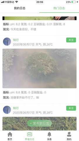 2、软件设置了一个独立的板块,用于展示各地养殖户上传的、带有时间戳和图片记录的日常养殖过程。