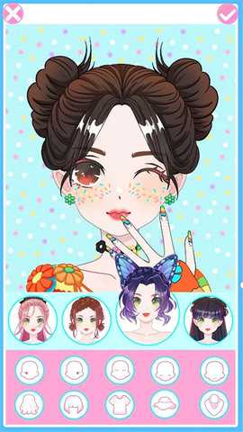 1、应用内整合了数量可观的装饰元素库,从古典发髻到现代潮服,从俏皮表情到精致妆容,几乎覆盖了形象定制的所有视觉维度。