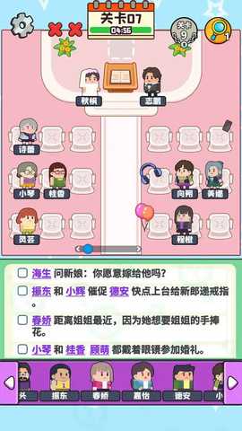 1、进入关卡后,首先整体观察场景全貌,例如在婚礼关卡中,需要快速识别出新娘、宾客、花童等角色的待定位置。