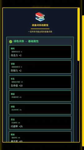 1、装备档案馆功能清晰地列出了各类词条的出现概率与具体效果,为玩家的装备筛选与目标制定提供了可靠的数据参考。
