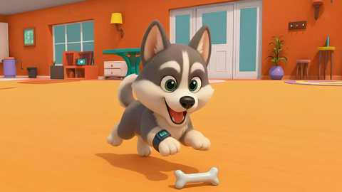 4、家居环境的建模与物件摆放注重生活化细节,营造出一种真实且充满趣味的宠物生活氛围。