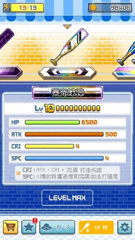 2、通过游戏过程收集硬币,可用于强化现有球棒的攻击力或解锁外观与属性各异的新球棒。