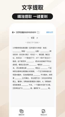 全能扫描通是一款集文档扫描、文字识别与格式转换于一体的智能工具,其内置的OCR引擎能够精准处理印刷体与手写内容,并自动完成版面分析与分割。在拍摄环节,软件可智能消除文档阴影、反光并校正透视变形,即便在光线不足的环境下也能产出清晰的电子文件。通过连续拍摄与自动分页机制,能轻松将多页纸质材料整合为一份完整的PDF文档,极大地便利了移动办公与现场资料处理。
