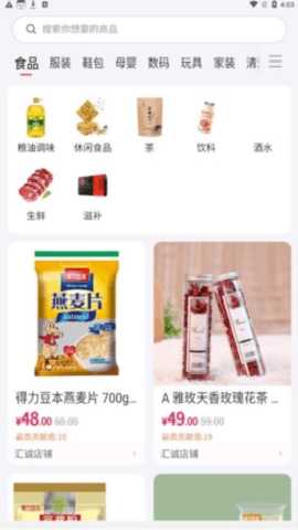 3、通过顶部的搜索框输入关键词,能够快速定位到包含服装、百货、数码等在内的各类商品。