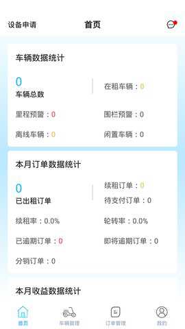 1、登录后进入主面板,顶部的选项卡分别对应车辆管理、订单中心与数据报表几个核心板块。