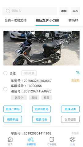2、在车辆管理板块,可以查看所有电动车的实时位置、电量状态,并对车辆进行上架或维护操作。