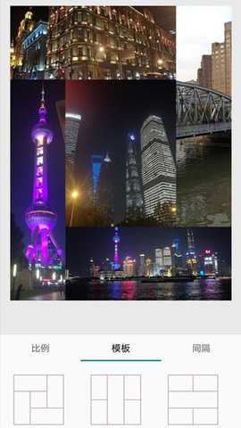2、从相册中勾选需要拼接的图片后,点击确认,界面会进入模板选择库,左右滑动可以预览不同布局。
