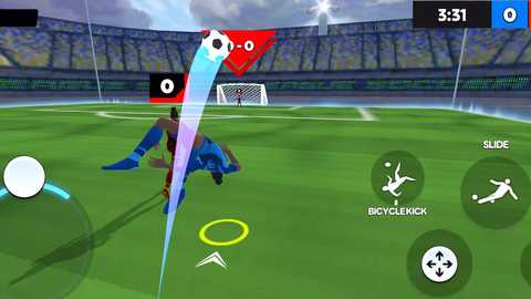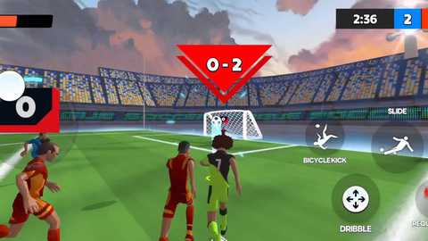 1、进入游戏后首先完成基础引导赛,期间会学习拖动虚拟摇杆控制球员移动,以及点击射门、传球和技能按钮。