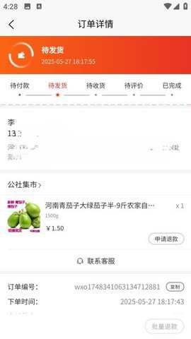 5、订单提交后,在我的订单详情页里,点击联系卖家按钮可以就物流保鲜等细节与对方进行沟通。