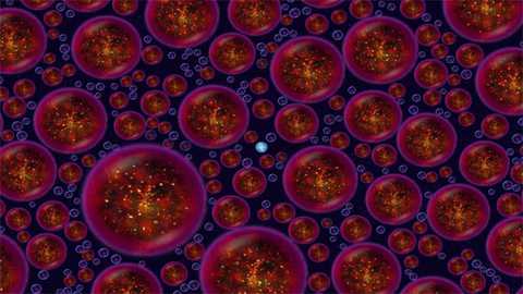 2、从微观星尘到宏观星系的视觉过渡平滑,色彩与光影的变化暗示着单位体积与状态的改变。