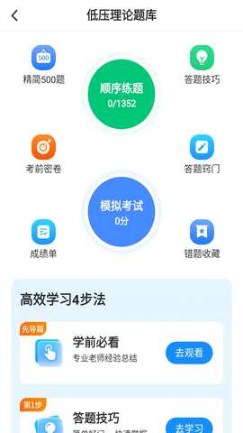 2、针对电工职业资格考核中的常见实操题目,软件提供了分步骤的专项练习模式,并附带详细的原理讲解。