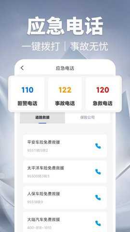3、各类交通事故报警、医疗急救等关键联系电话被预先收录,在紧急界面中直接点击即可呼出拨号界面。