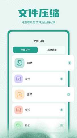 1、在软件主界面的底部导航栏找到压缩选项,进入后点击添加文件按钮,从手机存储中选择需要打包的照片或文档。