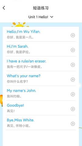 1、教材音频与印刷页面实现了精确到句子的同步对应,点击任意一行文字都能听到对应的标准朗读。
