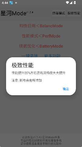 星河Mode手机流畅神器是一款针对特定品牌移动设备进行深度系统调优的实用型工具,借助Shizuku框架获取必要的系统权限,从而对设备后台进程与资源分配机制展开细致调整。工具在游戏运行、日常应用响应速度以及电力消耗管理等多个维度都展现出明显的优化效果,允许使用者在不同场景下灵活切换对应的性能配置方案。针对游戏场景的专项模式能够突破常规性能限制,有效提升画面刷新频率,减少操作响应时间,为长时间运行的图形密集型应用创造稳定的运行环境。