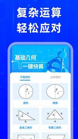 2、针对圆形、三角形、矩形等平面图形以及球体、立方体等立体图形,可快速计算其面积、周长或体积。