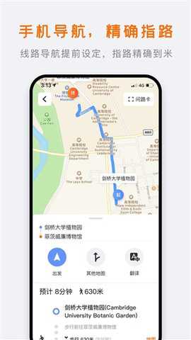 2、基于实时定位与地图数据,软件能够计算出从当前位置前往下一个目的地的详细步行或公共交通路线。