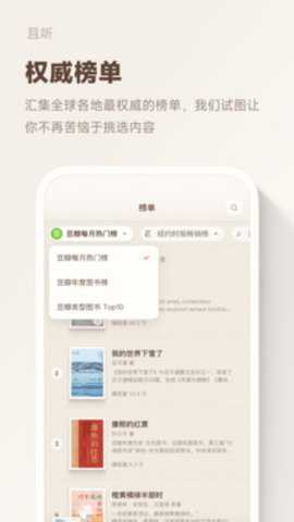 1、进入且听首页后,浏览今日推荐或热门榜单区域,点击任意专辑封面即可进入详情页了解内容简介与章节列表。