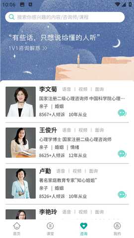3、由行业内的资深人士录制的系列音频与视频内容,围绕情绪调节、人际关系等常见议题展开,形式适合利用日常的零散时间进行收听学习。