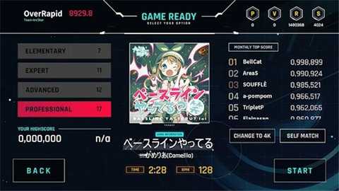 1、开始游戏前,建议先在FREEPLAY CONSOLE中根据自身水平选择合适的键数与歌曲难度,避免直接挑战过高谱面。