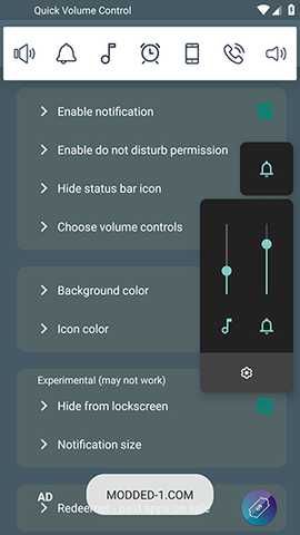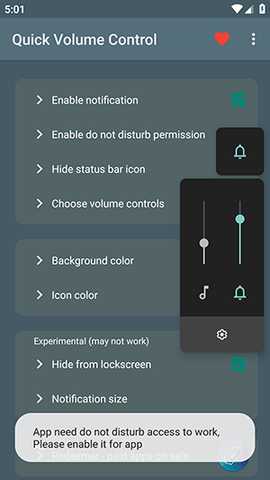 2、软件设置中包含将音量控制组件集成到系统下拉通知栏的选项,实现更快速的全局访问。