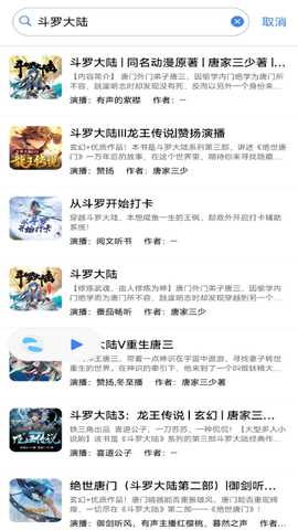 2、在搜索结果页面点击想听的有声书封面,即可进入详情页并开始播放,资源匹配度很高。
