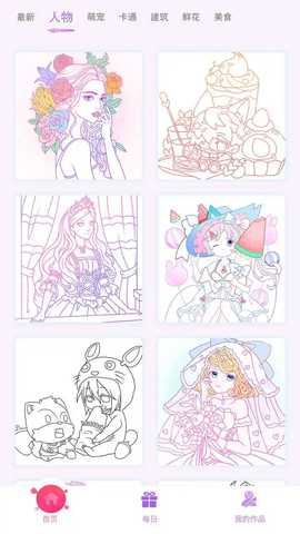 1、应用内图库持续扩充,涵盖动物、风景、节日等多种主题的线稿。