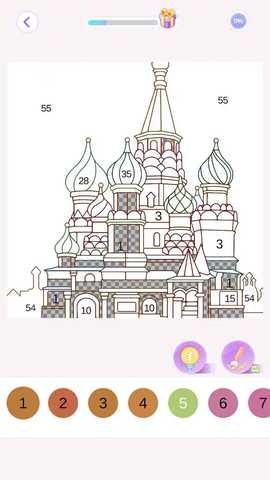 3、点击色盘选中一个颜色,点击画布上标有相同数字的区域,该区域即被填充。