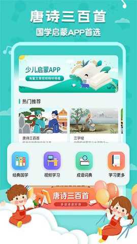 唐诗三百首国学启蒙是一款面向儿童的古诗词学习工具,收录了流传广泛的经典唐诗篇目。软件结合了拼音标注与语音朗读,辅助孩子认读文字、理解诗意。图文并茂的呈现方式有助于加深对诗歌意境和内容的印象,为家庭国学启蒙提供了一种便捷的数字资源。