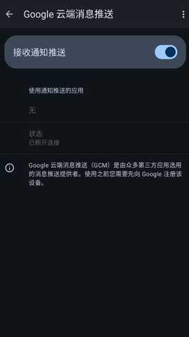 4、在设置中,依次找到并启用谷歌设备注册和云消息这两个核心选项的开关。