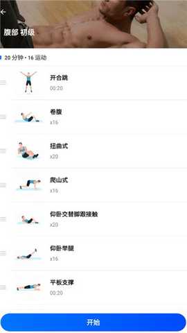 选定想训练的身体部位,点击【开始】进入训练;