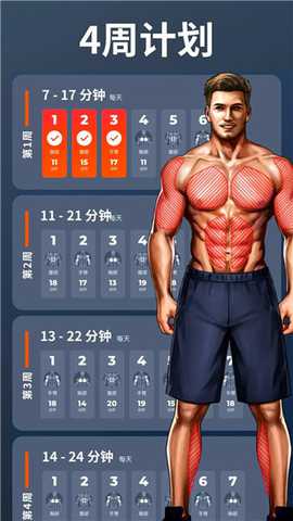 3、私人健身教练破解版除了分部位训练,应用也提供了如开合跳、膝盖俯卧撑等综合性的全身动作组合,促进身体各肌群的协调发展。