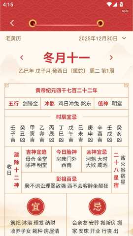 1、软件提供了详尽的黄历宜忌查询,内容涵盖嫁娶、出行、动土等多项传统事项,方便用户在规划重要活动时作为参考依据。