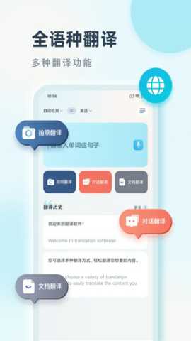 1、主界面会显示语音、拍照、文档等不同入口,根据你想翻译的内容类型,点击对应的图标。