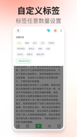 2、在笔记列表页或编辑页,都可以直接为当前笔记添加或修改标签,标签管理操作贯穿于使用的各个环节。
