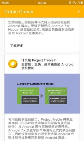 1、检测过程Project Treble的兼容性判定,最终结果以直观的文字形式直接展示在屏幕上。