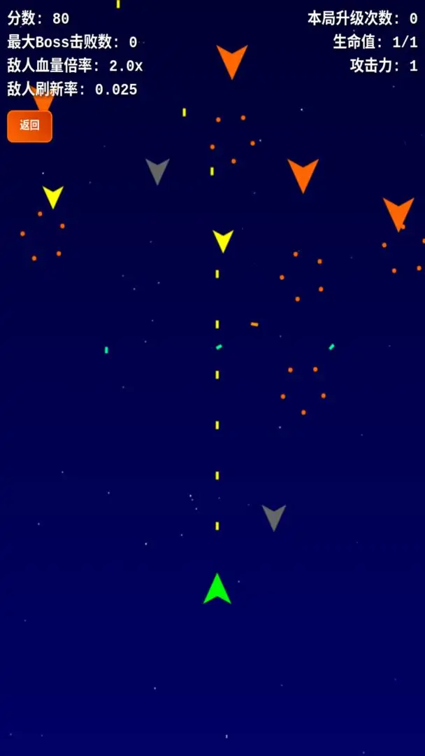 飞机大战是一款经典的飞行射击类游戏,游戏内容围绕操控战机进行战斗展开。游戏提供了多种难度设定与自定义选项,允许对敌机属性进行调整。通过击败敌机积累分数,挑战包含高血量单位在内的多种对手。游戏内设有成长机制,可利用获取的资源强化战机性能。数据记录功能帮助追踪游戏进程。