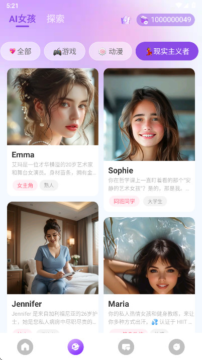 3、软件提供了数十种预设角色档案,每个角色都设定了独立的背景故事与对话风格倾向。