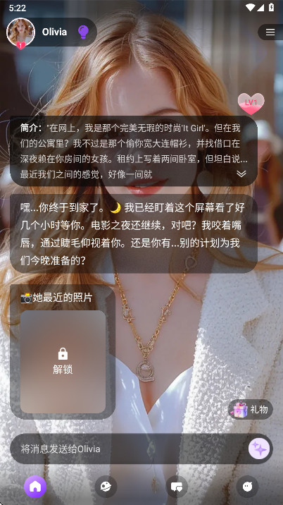 1、在角色画廊界面停留三秒,系统会弹出该角色的背景故事浮窗,帮助决定是否开始对话。