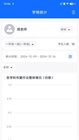 4、支持按日期范围筛选,查看特定时间段内班级的作业完成与教师批改概况。