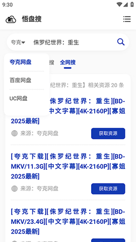 3、在展示搜索结果时,会清晰标注资源来源于哪个具体网盘,方便用户根据自己常用的平台进行选择。