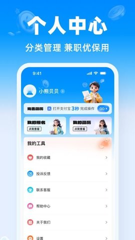 1、首次进入软件,建议先在我的页面填写可工作的时间段,这会影响后续的岗位推荐。