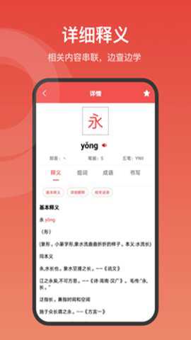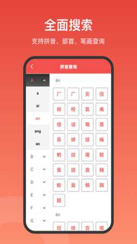 1、支持按汉字部首和笔画数进行检索,方便不熟悉拼音的用户快速定位生字。