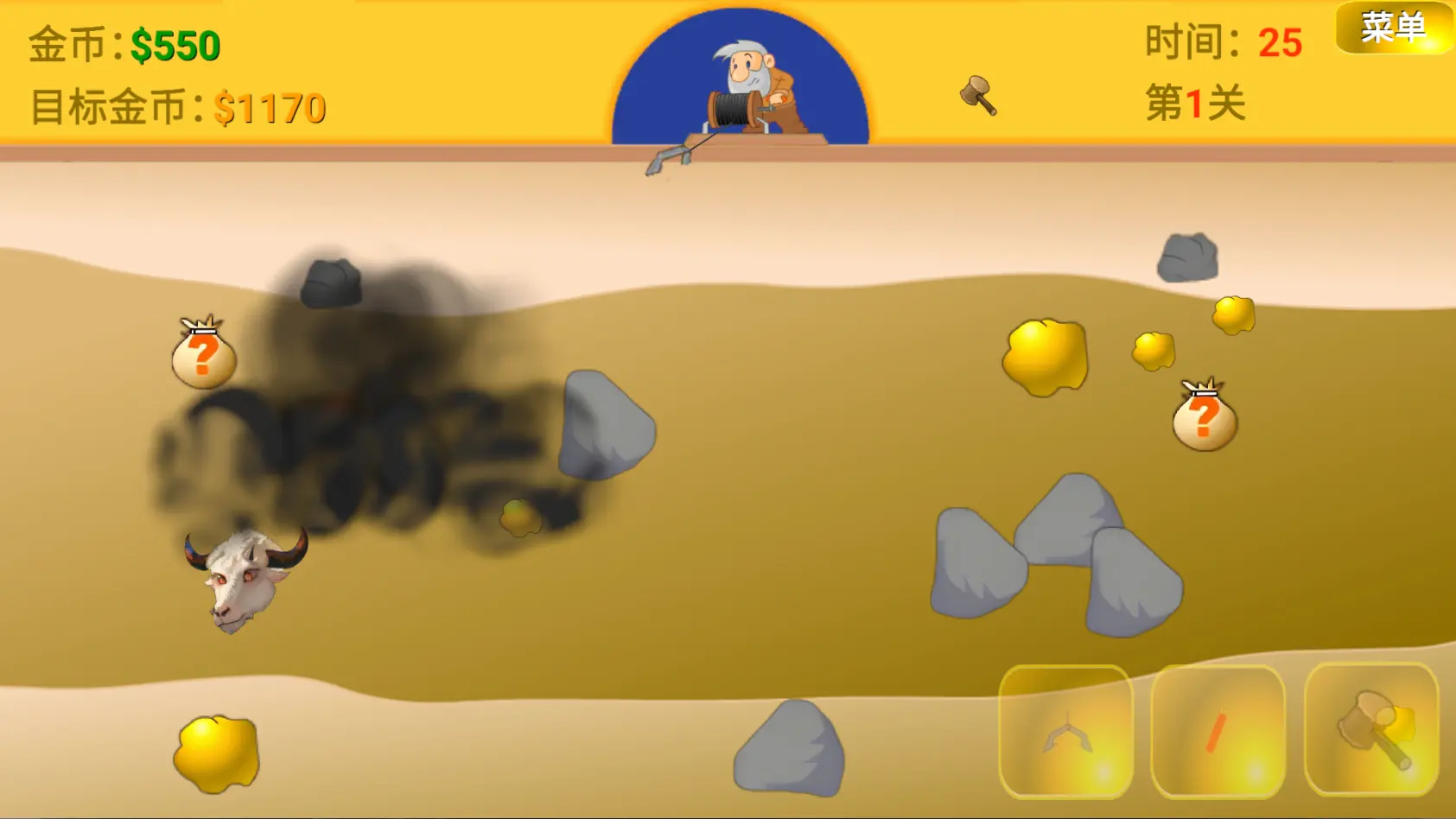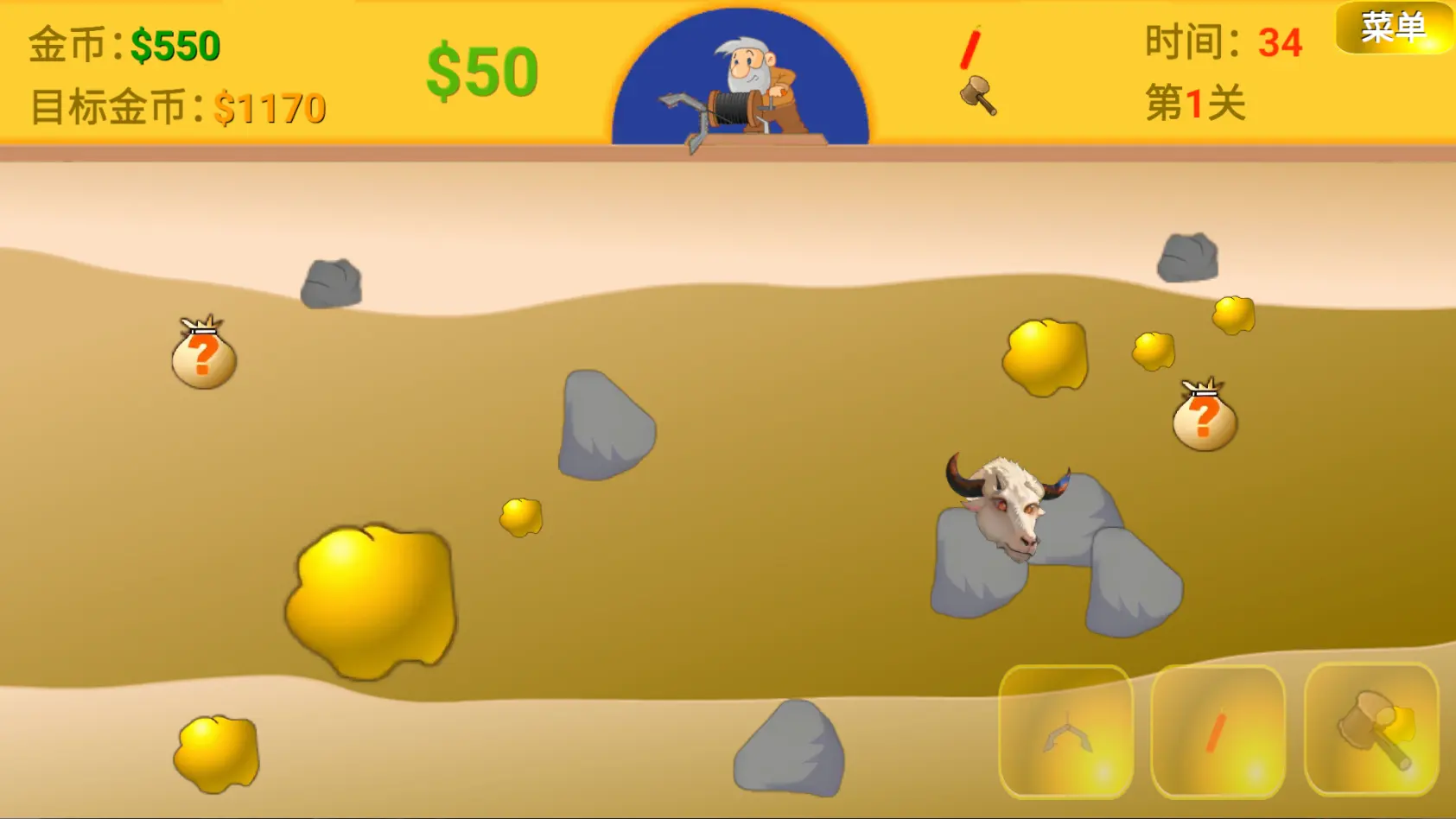 1、在关卡初期资金较少时,应优先遵循软件的提示抓取中小型金块,快速积累初始资本,避免冒险尝试价值高但位置刁钻的大型金块导致时间浪费。