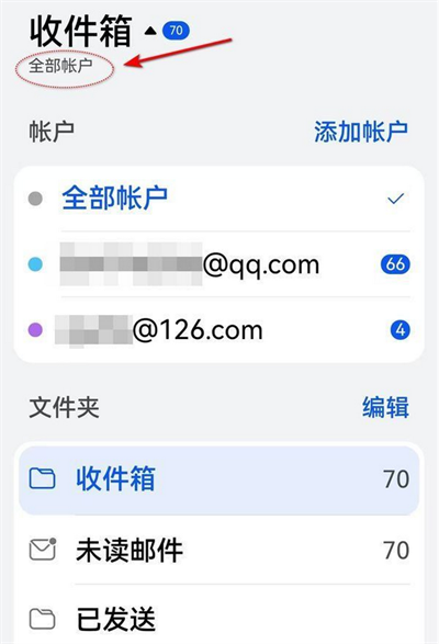 3、进入主界面后,向左滑动某个邮箱账户的标签,可以快速进入该账户的独立收件箱进行管理。