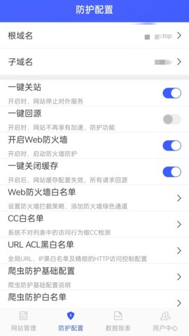 5、若需临时阻断访问,可在网站管理列表找到对应域名,使用一键关站功能,事后可通过一键回溯恢复。