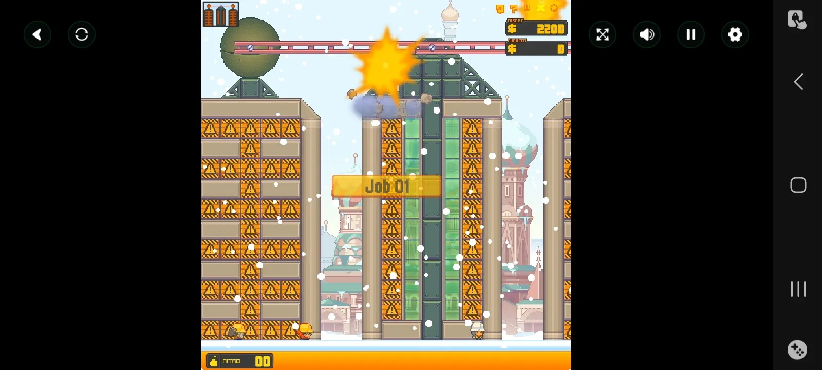 高楼爆破莫斯科是一款英国Nitrome工作室开发的Flash物理解谜游戏,属于Rubble Trouble系列第三部作品,游戏背景设定在莫斯科,核心任务是通过使用炸药、切割工具等设备,精准拆除指定的建筑结构,在完成拆除目标的必须确保地图上标明的保护建筑与工人的安全,游戏包含20个莫斯科主题关卡与10个拓展的太空关卡,构成了完整的挑战流程。