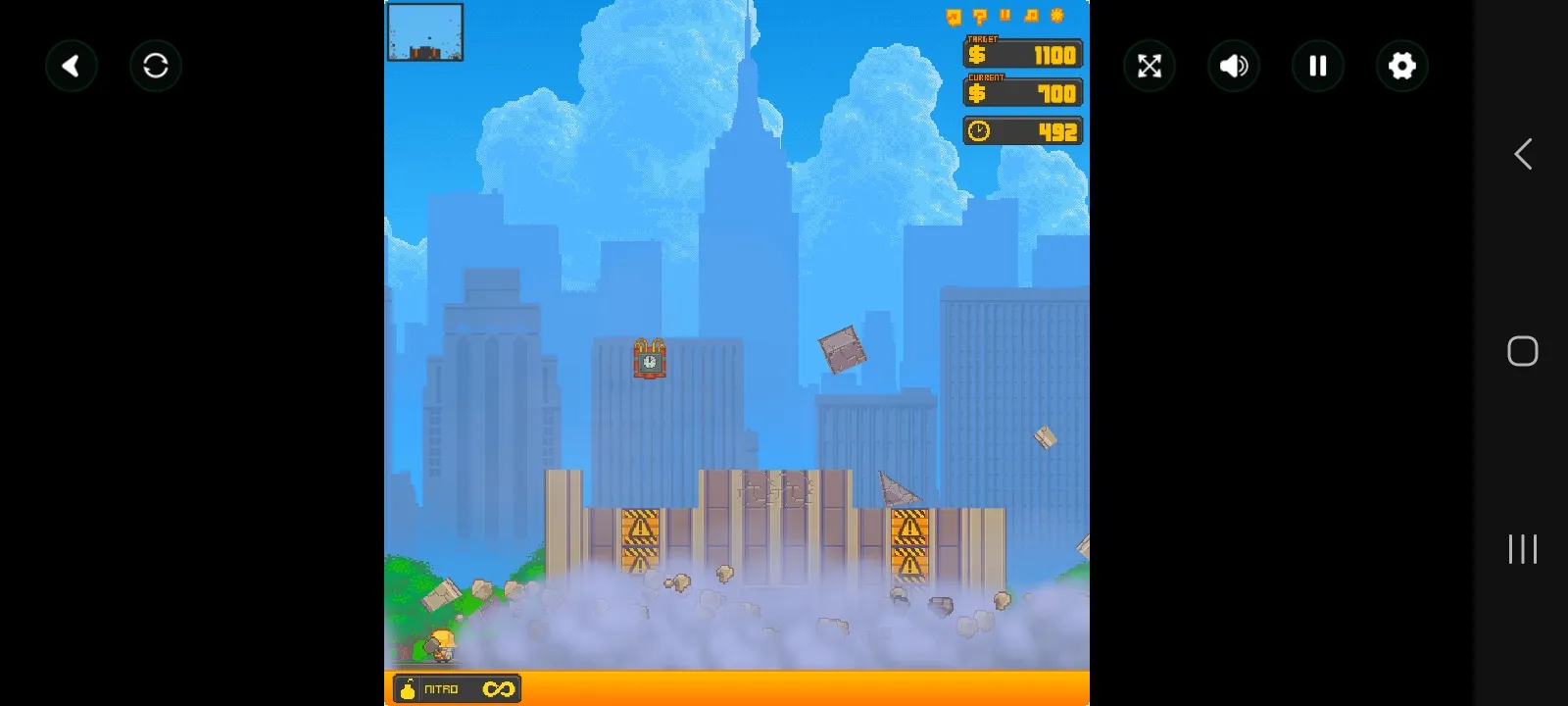 高楼爆破纽约是一款英国Nitrome工作室开发的Flash物理解谜游戏,作为Rubble Trouble系列的开篇之作,游戏将舞台设定在纽约,玩家需要利用有限的工具拆除废弃建筑以达成目标金额,拆除过程中需小心避开受保护的建筑和工人,部分关卡还设有需要安全护送至地面的保险箱以获取额外收益。