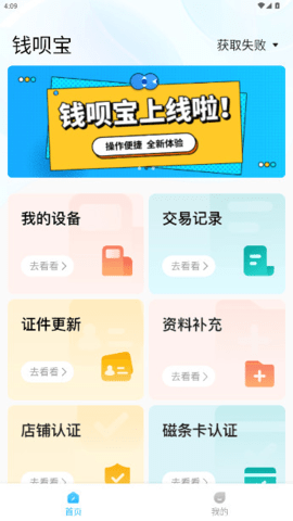 1、首页布局将核心功能划分为几个主要模块,商户可以根据当前需要快速进入收款、查账或管理页面。