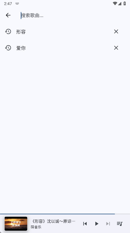 4、在播放页面向右滑动可以返回上级界面,向左滑动则进入当前播放列表查看后续项目。